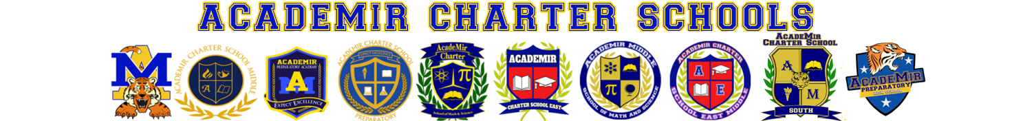 “EXPECT EXCELLENCE” Our Campuses AcadeMir Charter School West 14880 SW 26 St. Miami, Fl 33185 AcadeMir Charter School West PLC 2636 SW 144th Ave Miami, FL 33175 AcadeMir Charter School Middle 5800 SW 135 Ave. Miami, Fl 33183 AcadeMir Preparatory Academy 5800 SW 135 Ave. Miami, Fl 33183 AcadeMir Charter School Preparatory 19185 SW 127 Ave. Miami, Fl 33177 AcadeMir Charter School of Math and Science 13330 SW 288th St. Homestead, Fl 33033 AcadeMir Charter School East 11300 NW 41 St. Doral, Fl 33178 AcadeMir Middle School of Math and Science 13330 SW 288th St. Homestead, Fl 33033 AcadeMir Charter School East Middle 11300 NW 41 St. Doral, Fl 33178 AcadeMir Preparatory High School 12400 SW 216 St, Miami, FL 33170 AcadeMir Charter School South 14105 SW 184th St, Miami, FL 33177 Click button to join virtual board meeting